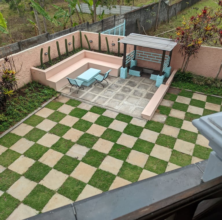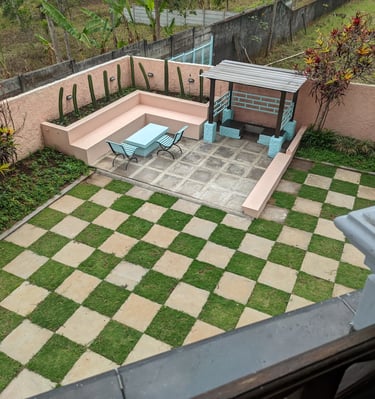 Taman luas untuk bersantai dan menikmati udara segar di sekitar villa.